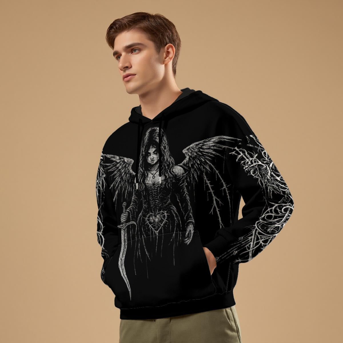 - Mânecă lungă, model buclat pe interior, cu șnur, buzunar tip cangur