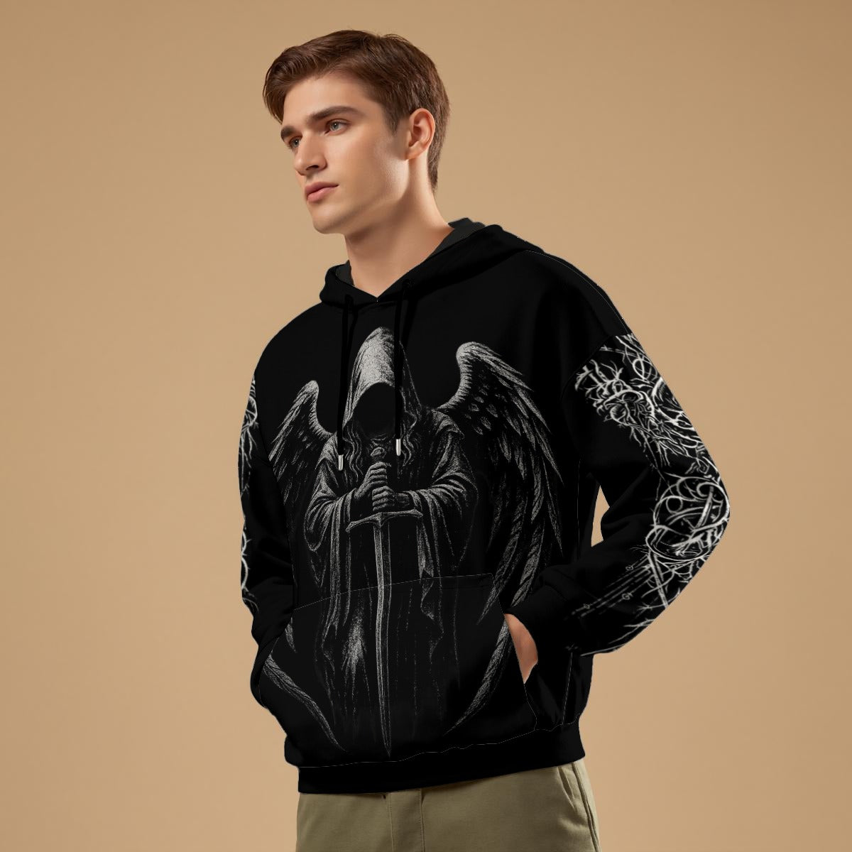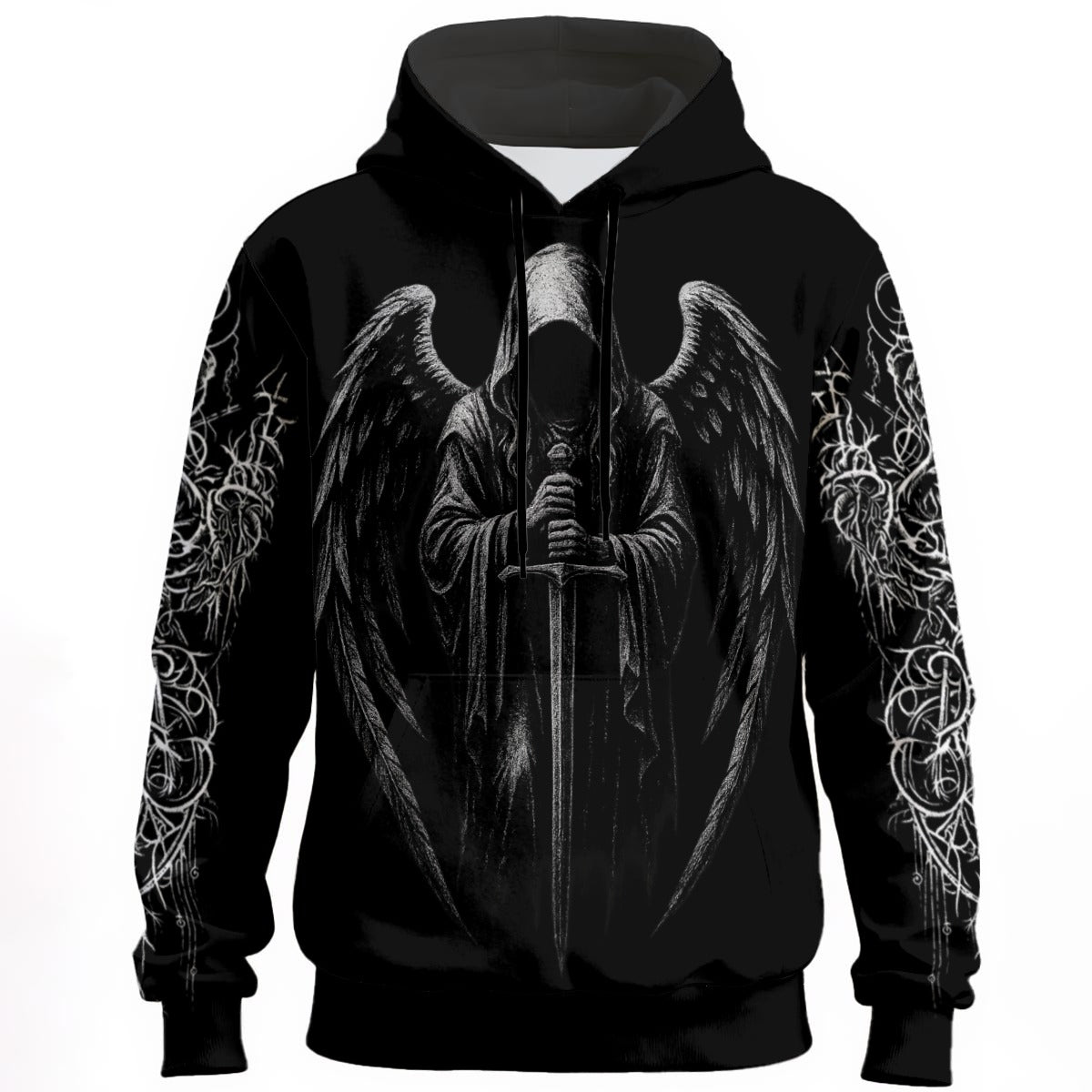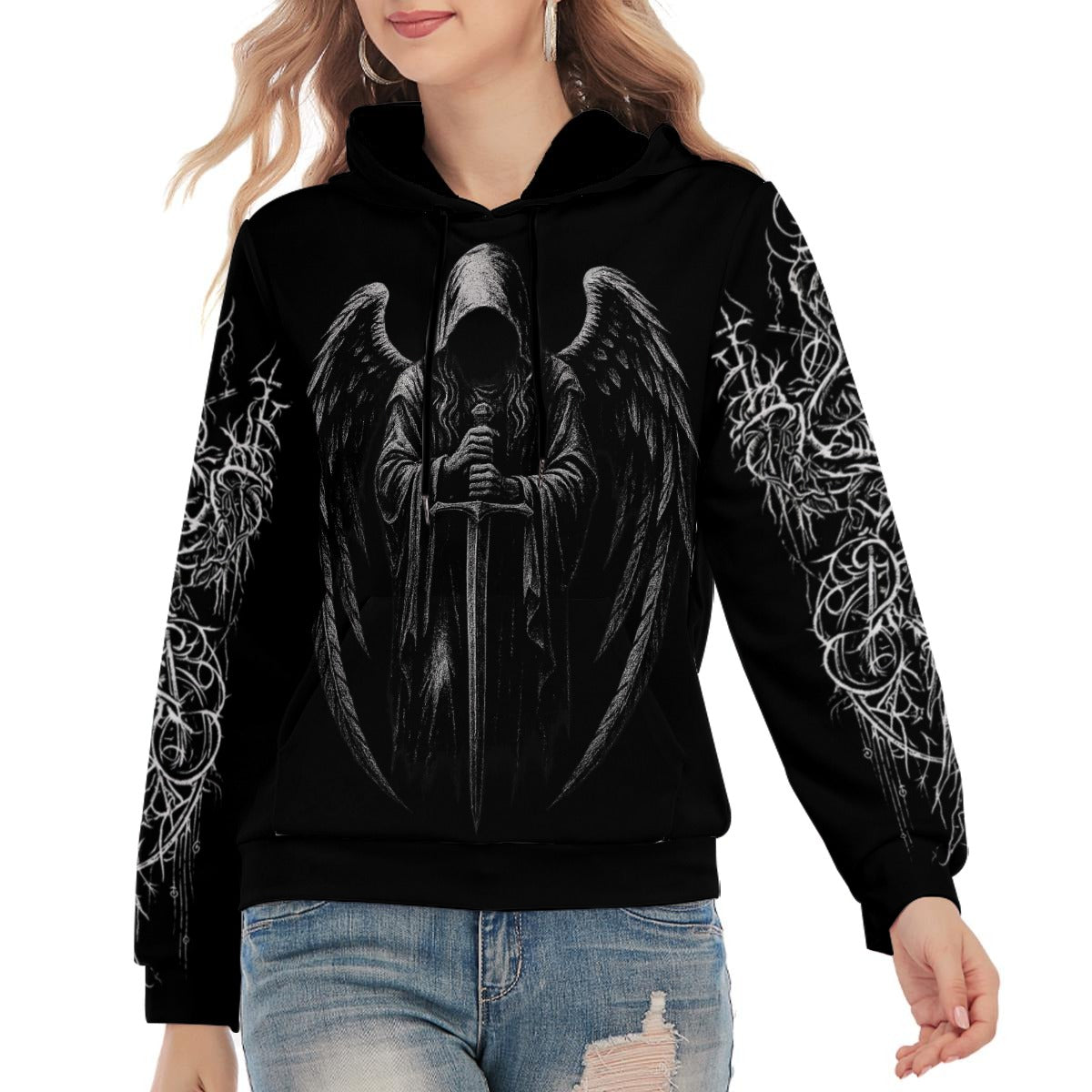 Hanorac cu îngerul morții și aripi design gotic întunecat