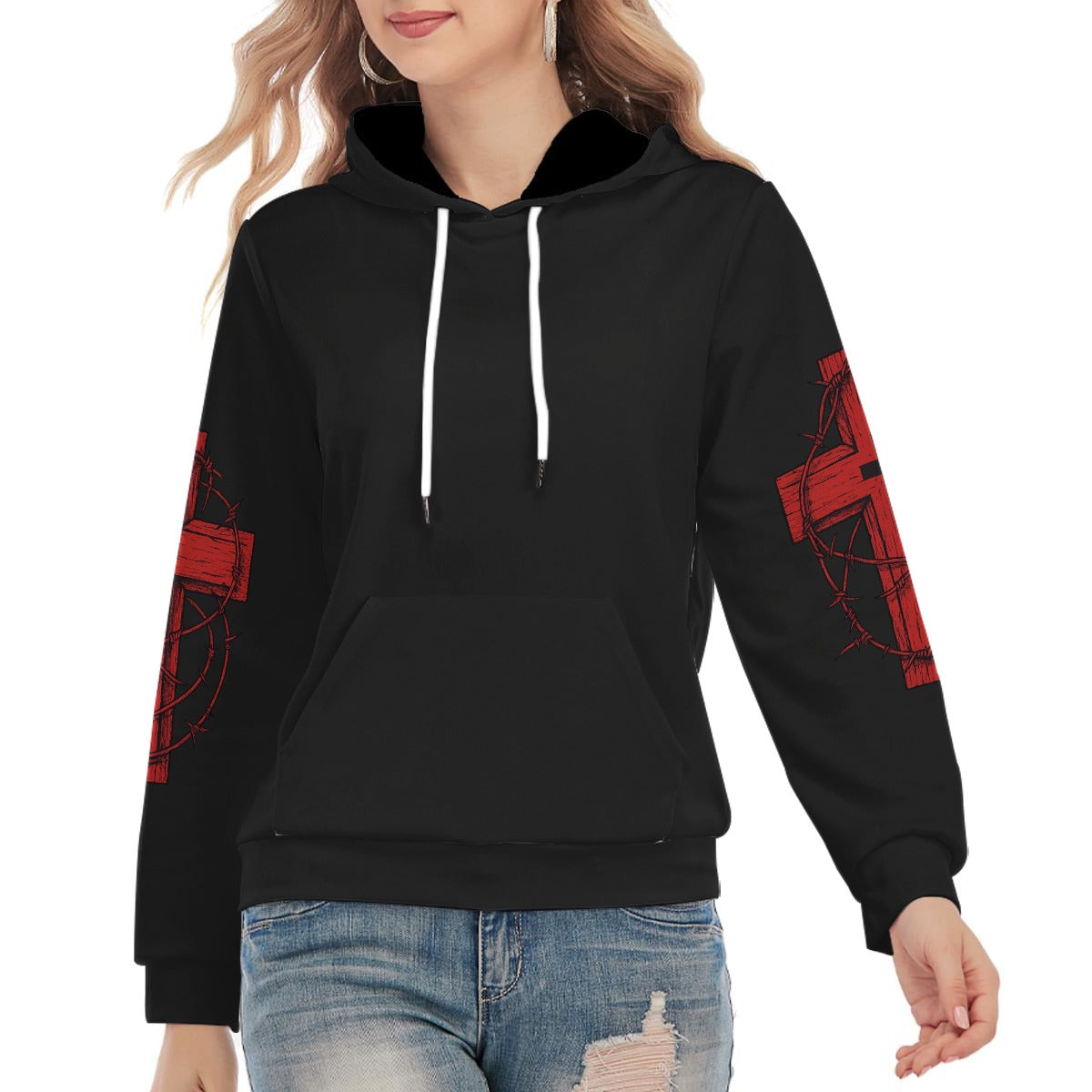 - Mânecă lungă, model buclat pe interior, cu șnur, buzunar tip cangur